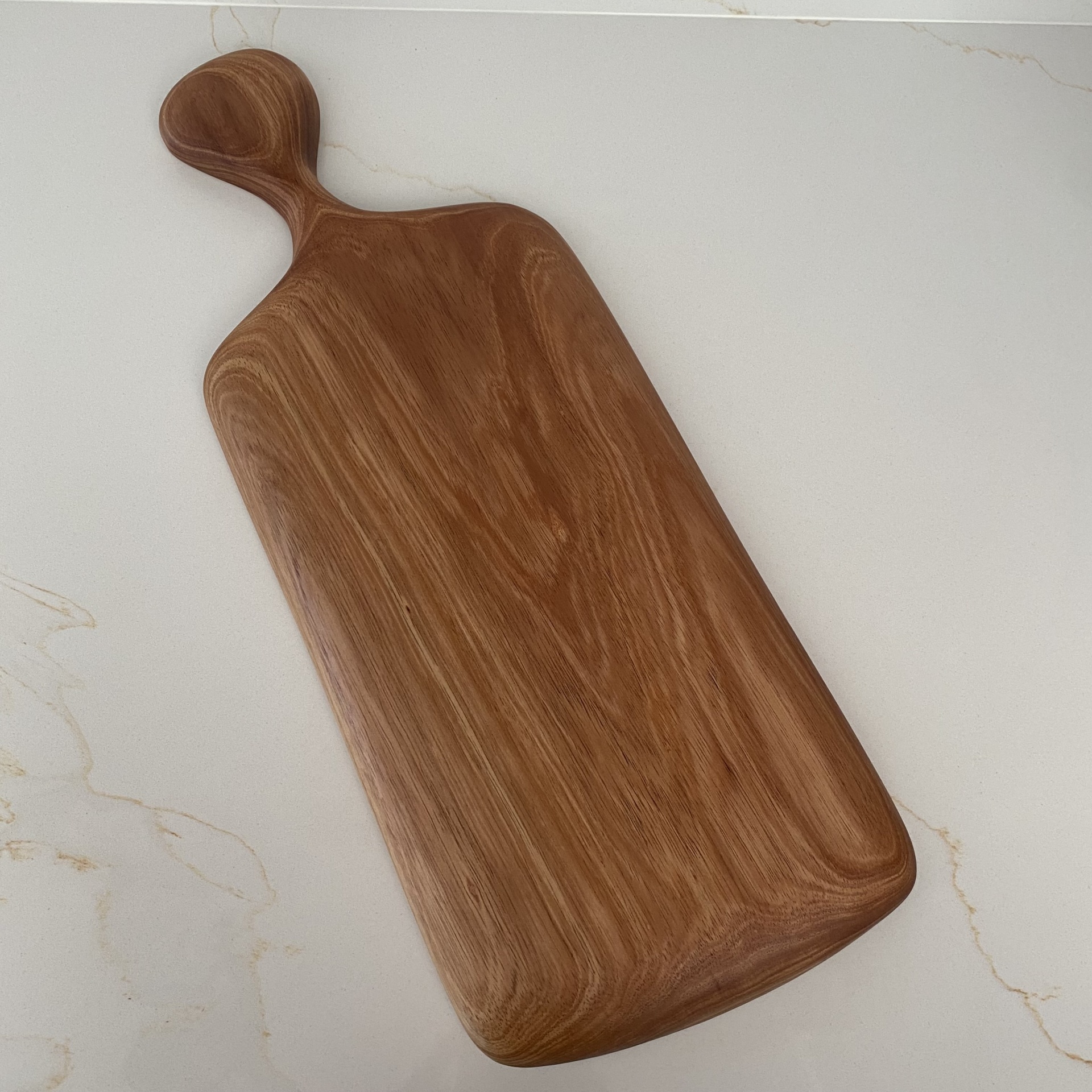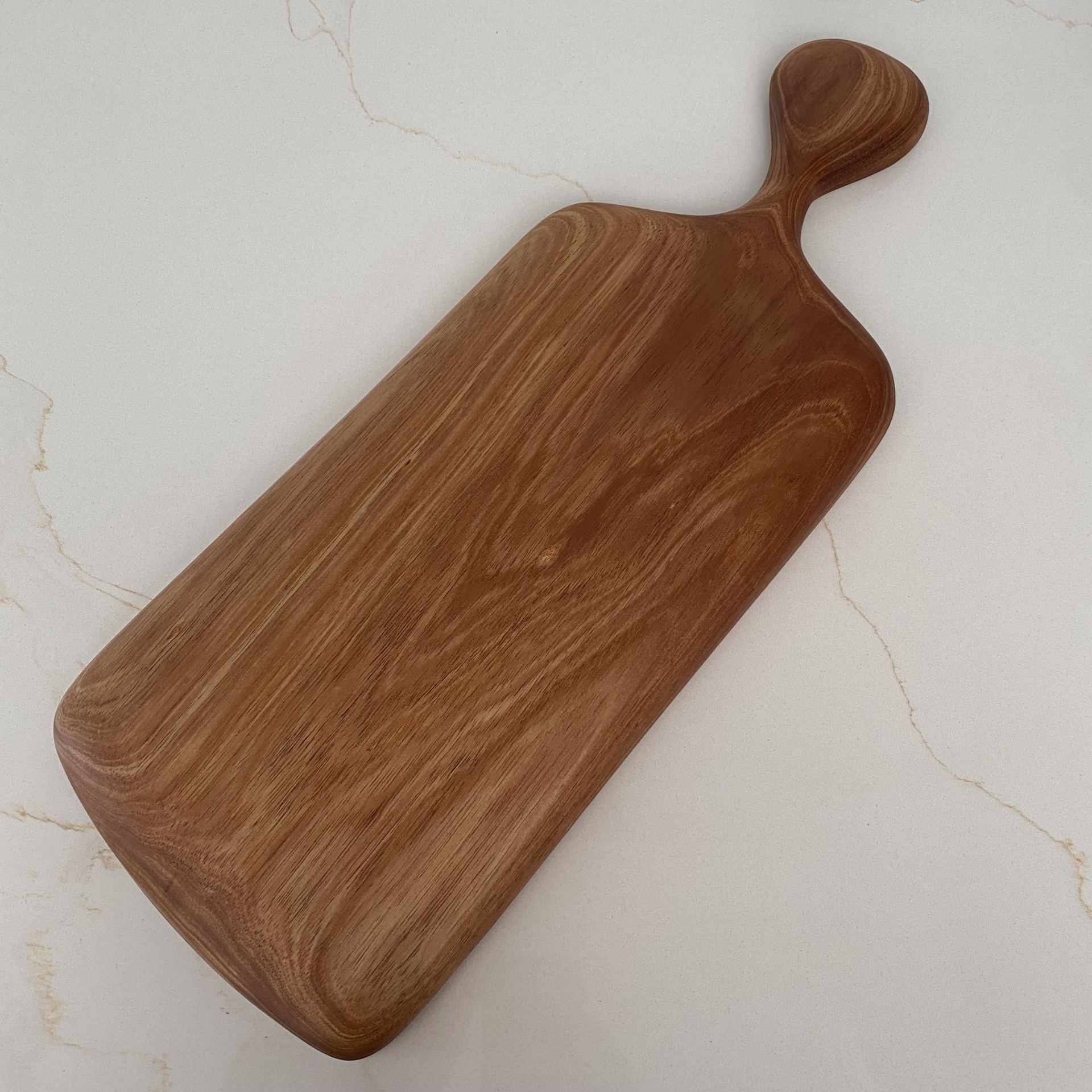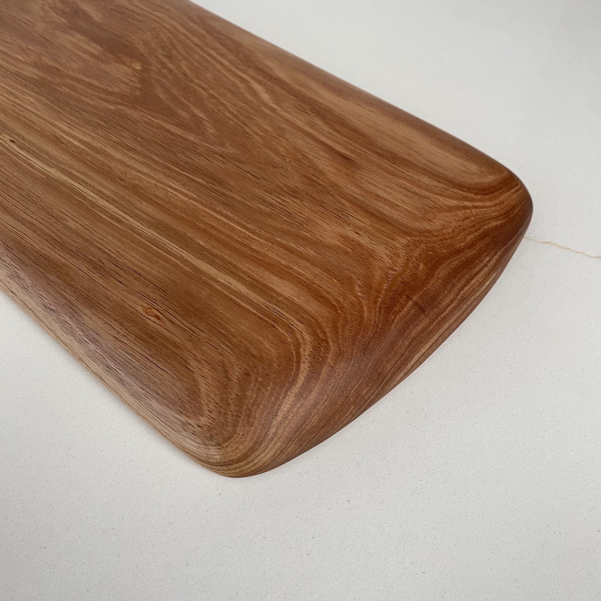 • Tábua de madeira retangular com alça sobre superfície clara